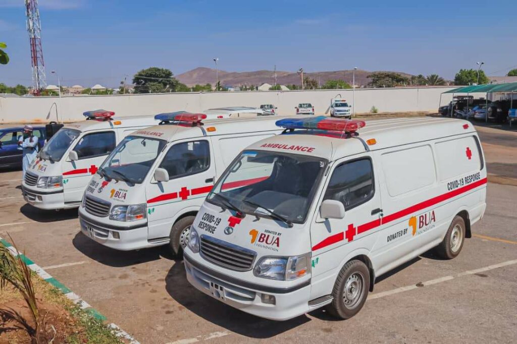 Earlier today, Governor Muhammadu Inuwa Yahaya received on behalf of Gombe state Government, a donation of 3 fully equipped Ambulances and 50,000 reusable facemasks from BUA Foundation, a charity arm of BUA International Group.