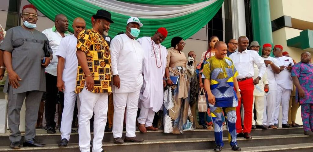 Governor of Enugu State and Leader of the Peoples Democratic Party (PDP) in the South East geo-political zone, Rt. Hon. Ifeanyi Ugwuanyi, the National Secretary of the Party, Senator Samuel Anyanwu, the Party’s Deputy National Legal Adviser, Okechukwu Osuoha, the Deputy National Treasurer, Hon. Ndubuisi Eneh, the PDP National Vice Chairman, South East, Chief Ali Odefa, other leaders of the Party in the zone, on Sunday, held a strategic meeting with expanded stakeholders of PDP in Anambra State.