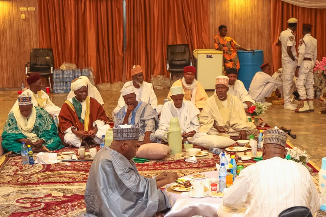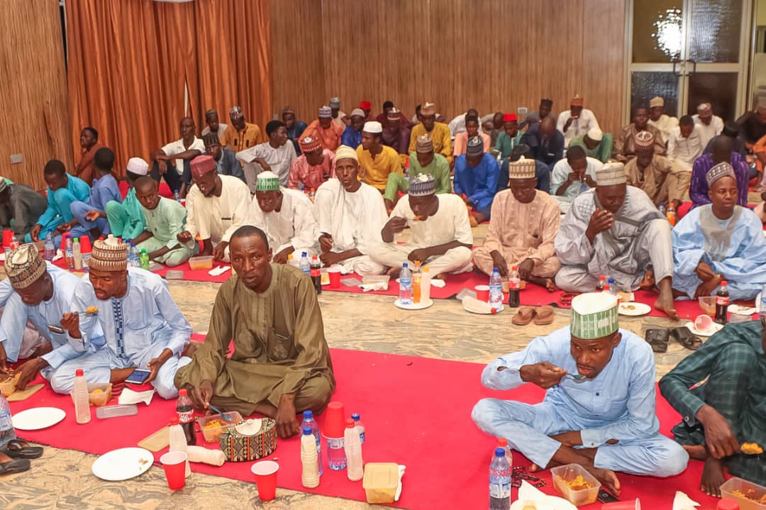 Governor Muhammadu Inuwa Yahaya has hosted more than three hundred members of Jama’atu Haffazul Qur’an Wal Ilim, comprising of Alarammas, Almajiris (tsangaya pupils) and other great custodians of Tsangaya Schools to a fast breaking (Iftar) at the New Banquet Hall, Government House, Gombe.